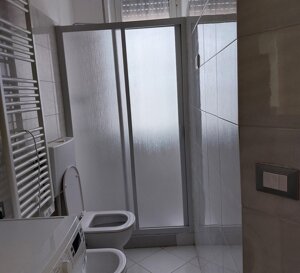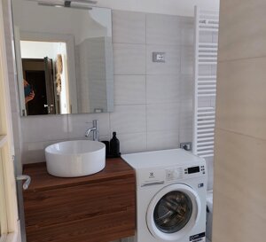 Bagno con doccia e lavatrice